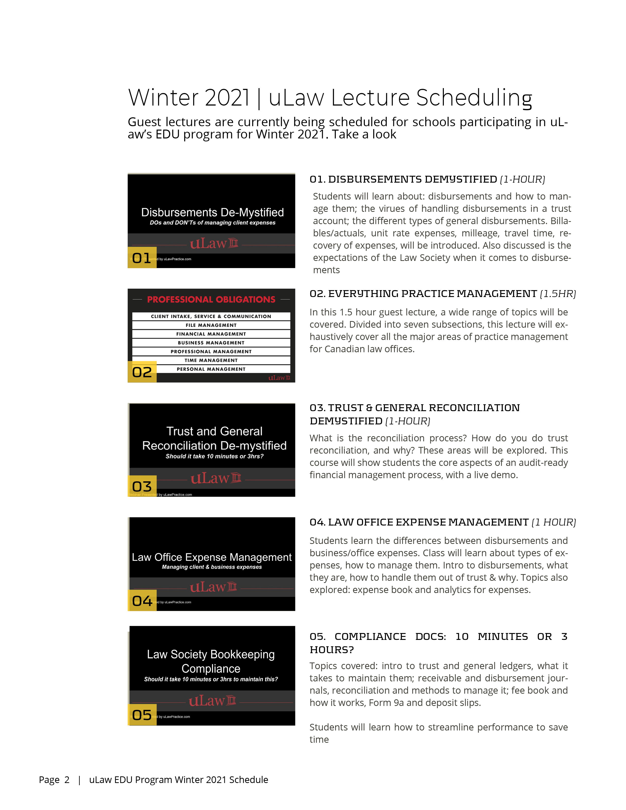 uLaw also offers a wide range of CPD accredited guest lectures which instructors can choose from. Take a look below.