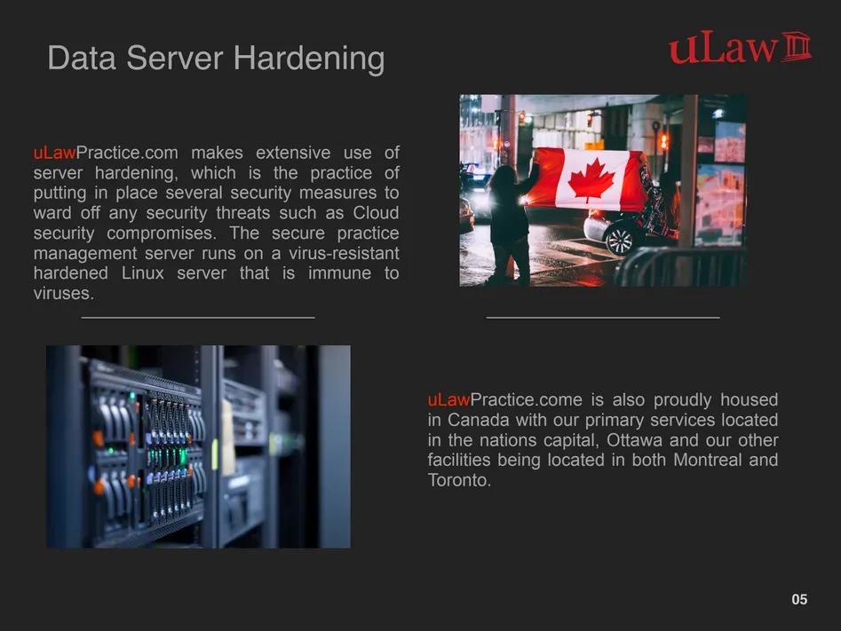 uLaw's primary servers spread throughout Ottawa, Montreal and Toronto.
