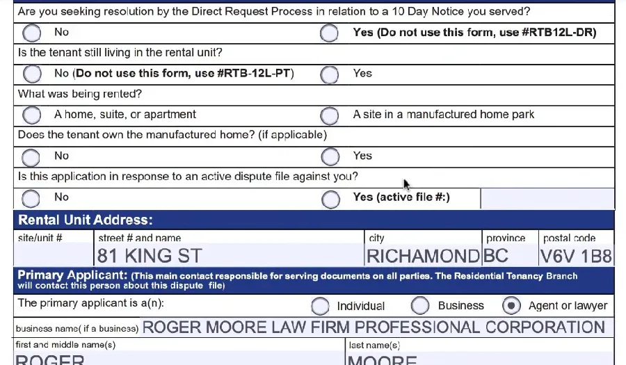 Once you download your new court forms, your client's information will be incorporated into British Columbia court form format. Example below.