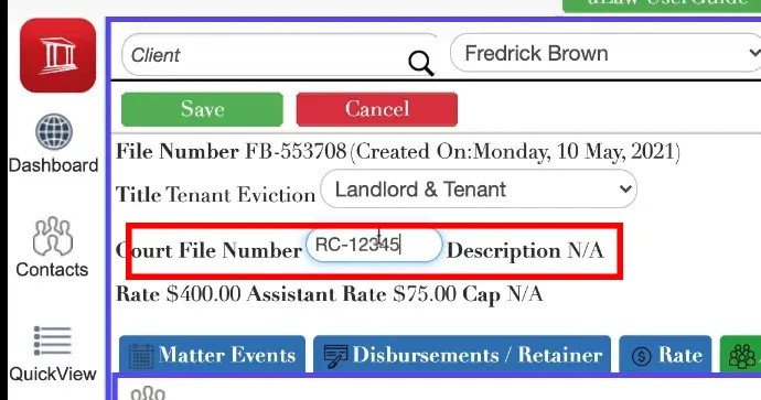 If you want the court file number however, you'll need to save the file number within the main controls under the matter.