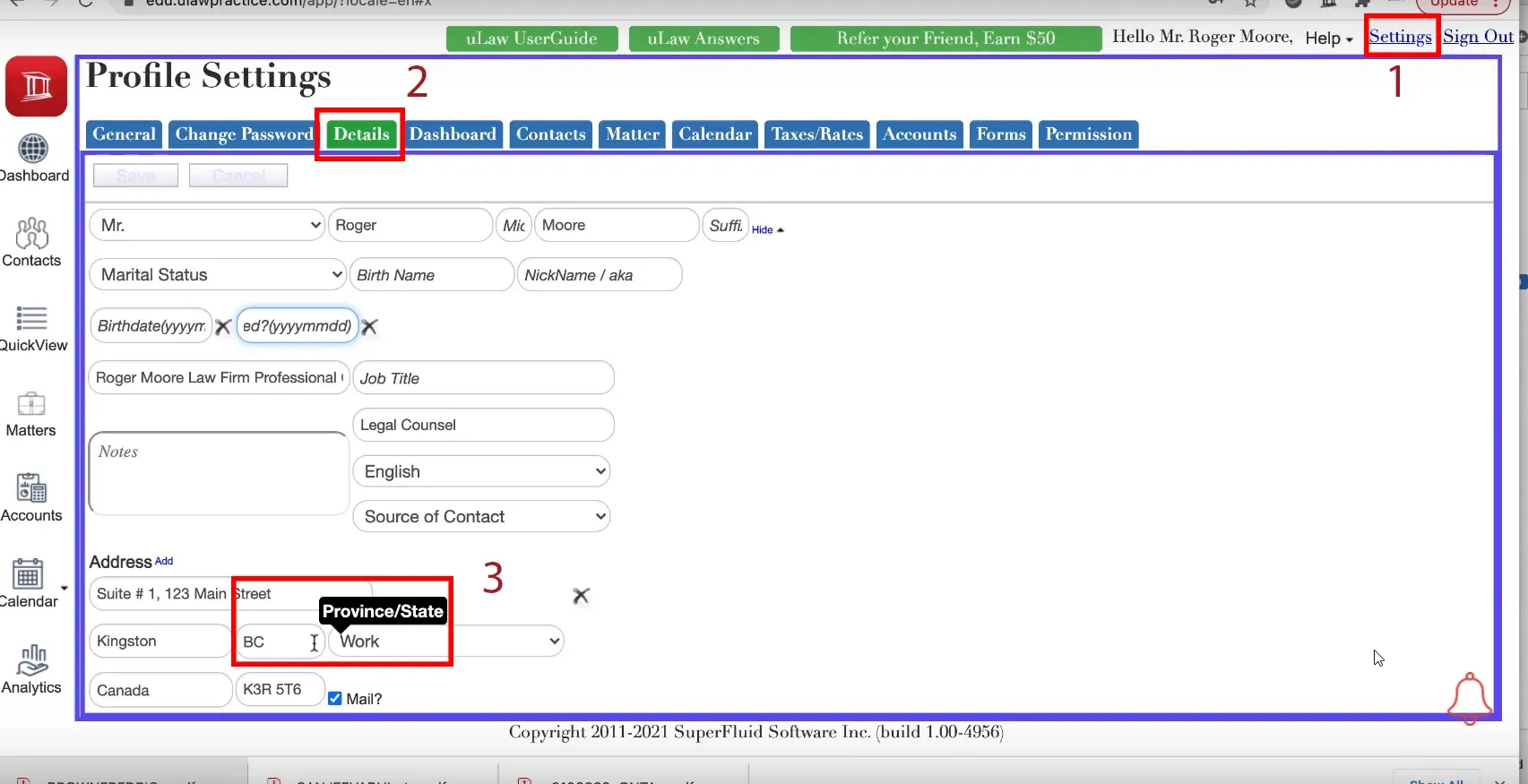 Users can first get started by visiting uLawPractice's main settings page. See image below.