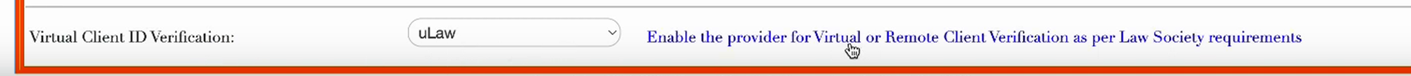 Scroll down until you see "Virtual Client ID Verification". Select 'uLaw' in the dropdown