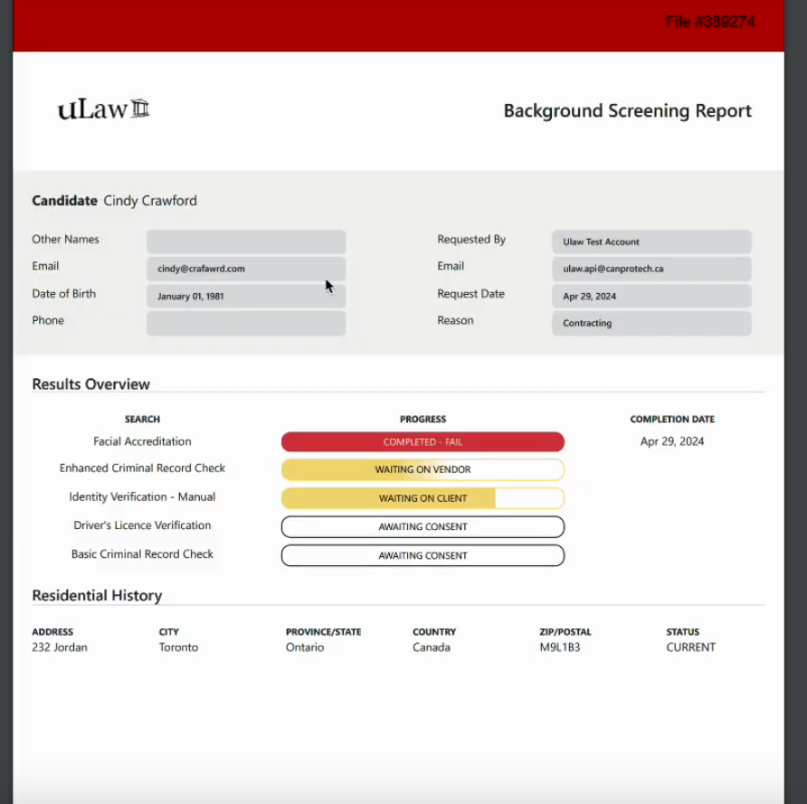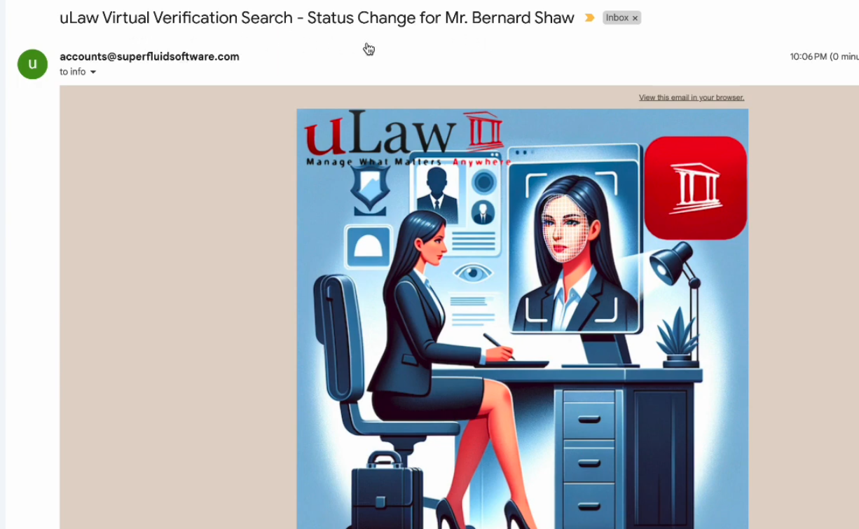 When you conduct a virtual verification search, uLawPractice will send you an email. It will look something like below: