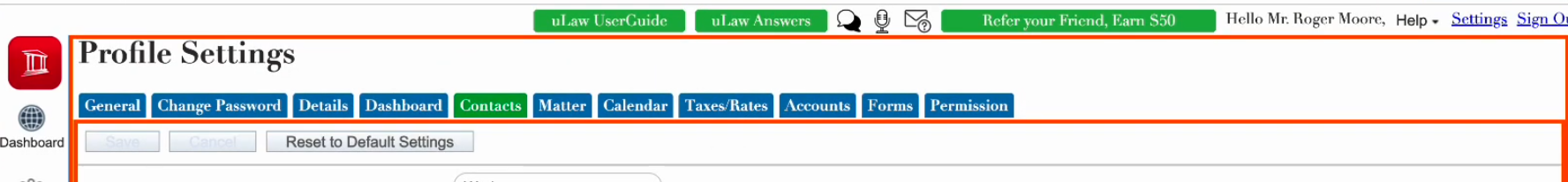 Start by logging into your uLaw account. Navigate to: