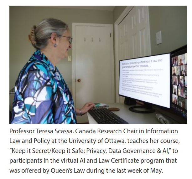 In May 2024, Queen's held its first virtual program. Titled "Artificial Intelligence and Law Certificate," the course focused on the global reach of AI, the governance of its usage, as well as legal compliance. Approximately 30 participants were enrolled in that program, most of whom were legal practitioners. These practitioners also earned Continuous Professional Development through their attendance in the course. And upon completion of the course, they obtained a Queen's Law AI and Law certification.