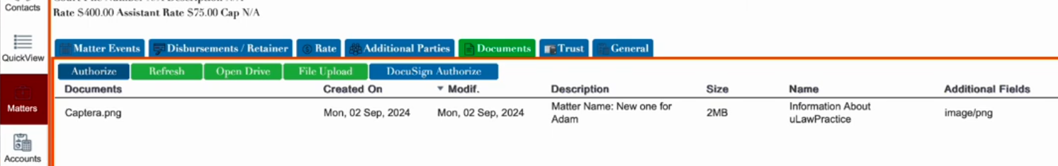 Whether you're generating invoices, settlement statements, or virtual verification, you can effortlessly organize all documents right inside uLaw under the matter screen.