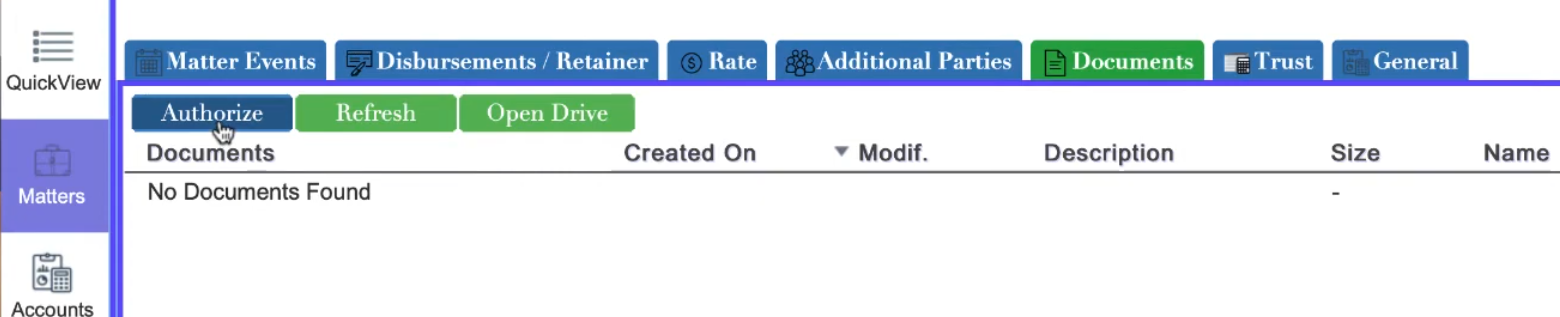 Another way to perform authorization is to click "Authorization" in the matter section of uLaw. It's the same process just from the perspective of google drive; but the permissions granted will be for both services so it's up to you.